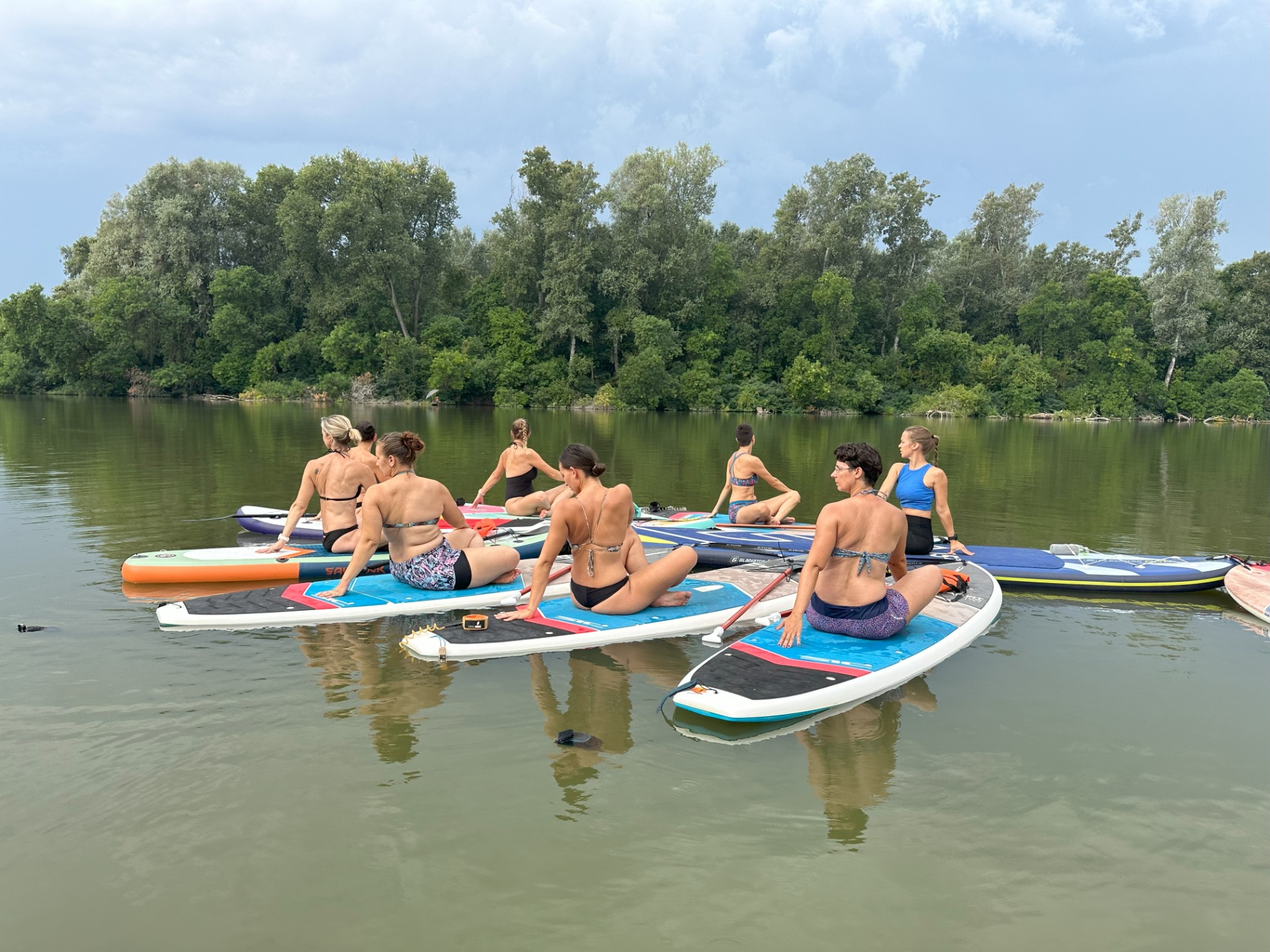 Nyaranta kimozdulunk, és a természetben kapcsolódunk önmagunkhoz a jógán keresztül. Egy SUP deszkán egyensúlyozva minden megszokott ászana más lesz, nagyobb kihívást és egyben sikerélményt jelent. Erősödnek a core-izmok, javul az egyensúlyérzékünk, a koncentrációnk. Az óra után (vagy akár közben is) jól esik egy csobbanás a langyos vízben. Utána maradhatunk még SUP-ozni, strandolni, fagyizni vagy úszni a hangulatos, homokos strandon. Akár egy egész napos családi programmal is összeköthető. Az órák helyszíne a Mártélyi Tisza-holtág.